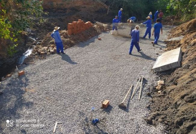 Mais uma obra vem sendo executada pelo Setor de Estradas e Secretaria Municipal de Obras, desta vez, a substituição da ponte do Filó, localizada no bairro Bandeirantes, por tubos de concreto, visa garantir maior segurança e durabilidade para o Bairro Band