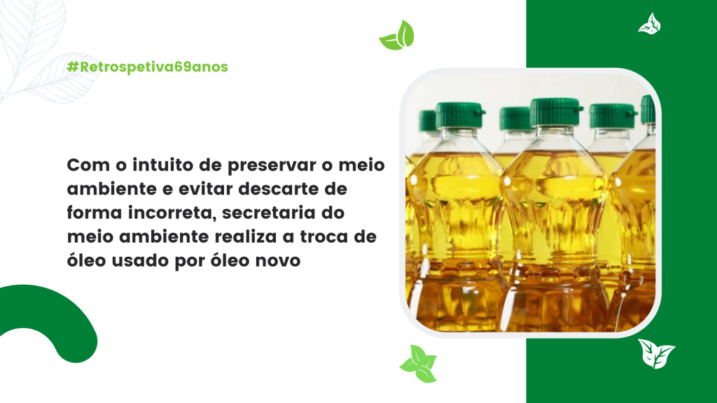 Com o intuito de preservar o meio ambiente e evitar descarte de forma incorreta, secretaria do meio ambiente realiza a troca de óleo usado por óleo novo.